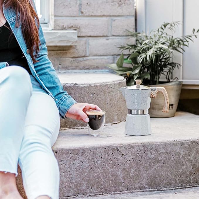 - ⭐ [ Premium Stone finish is 20x more durable than normal paint ] The Milano Stone series has a premium stone finish which is 20x more durable than ordinary enamel. This finish will maintain longer than other paints and has a hand applied specked paint. So every moka pot is slightly different than the other.