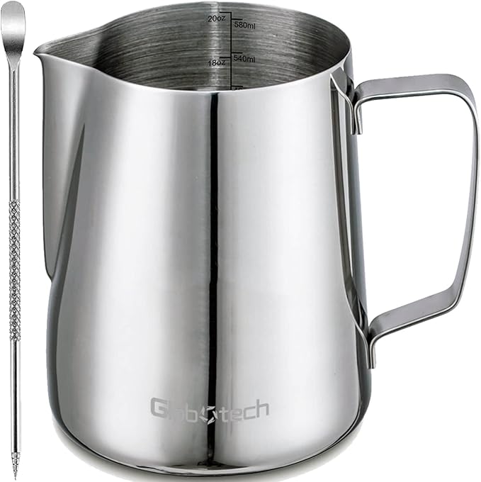 Stainless Steel Milk Frother Cup - Espresso Steaming Pitchers Coffee Foam Making Pitcher Latte Art Froth Cup Steaming Jug Cappuccino Hot Chocolate 20 Oz (600ml)