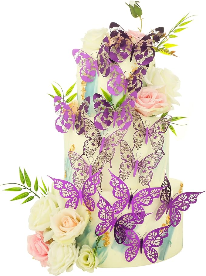 - 🦋Package included: 36Pcs Purple Butterfly Cupcake Toppers. Size is approx 3.9"*4.7". Comes with glue, so you can insert into your cake by yourself, which make your cake more interesting.