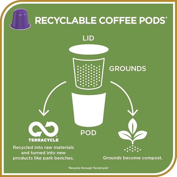 - Recyclable Through TerraCycle: We've partnered with TerraCycle to make our coffee capsules recyclable, allowing you to enjoy your favorite coffee while minimizing environmental impact - simply collect and send for recycling