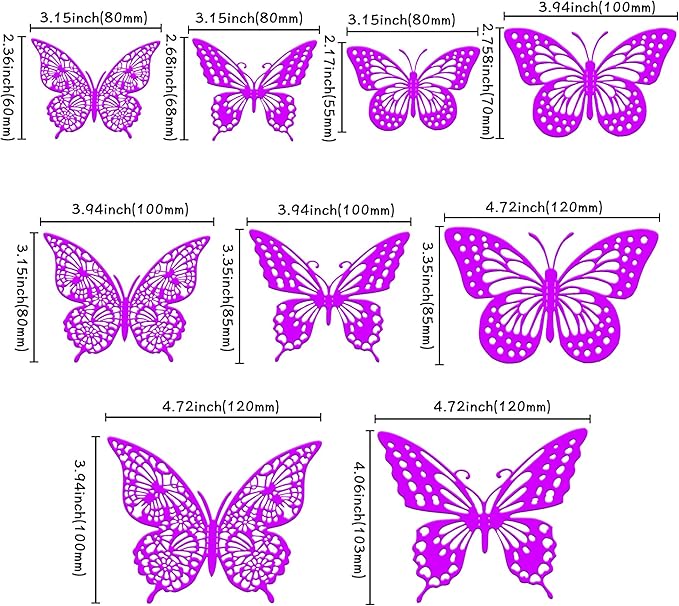 - 🦋Package included: 36Pcs Dark Purple Butterfly Cupcake Toppers. Size is approx 3.9"*4.7". Comes with glue, so you can insert into your cake by yourself, which make your cake more interesting.