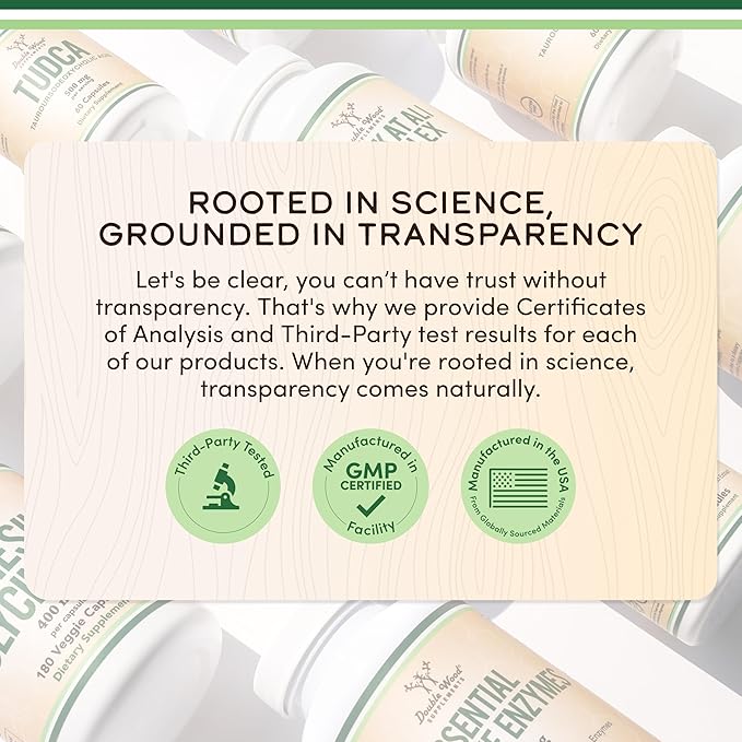 - WE BOTTLE WELLNESS: At Double Wood, we provide pure, potent supplements that deliver exceptional value, all backed by careful sourcing and rigorous third-party testing