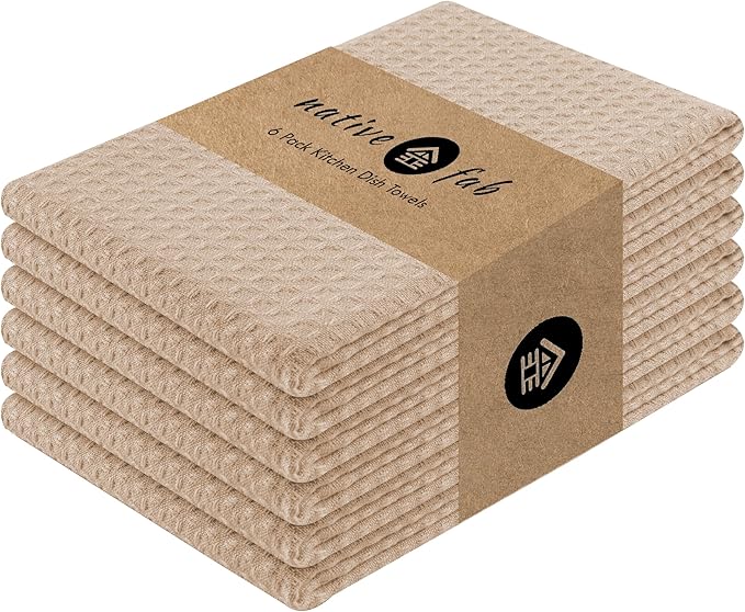 Native Fab Cotton Kitchen Towel with Hanging Loop 16x26 inches, 6-Pack, Waffle Weave Kitchen Towels for Cleaning Drying, Washcloths Soft & Absorbent Cloth Rags, Bar Towel, Dish Cloth, Beige