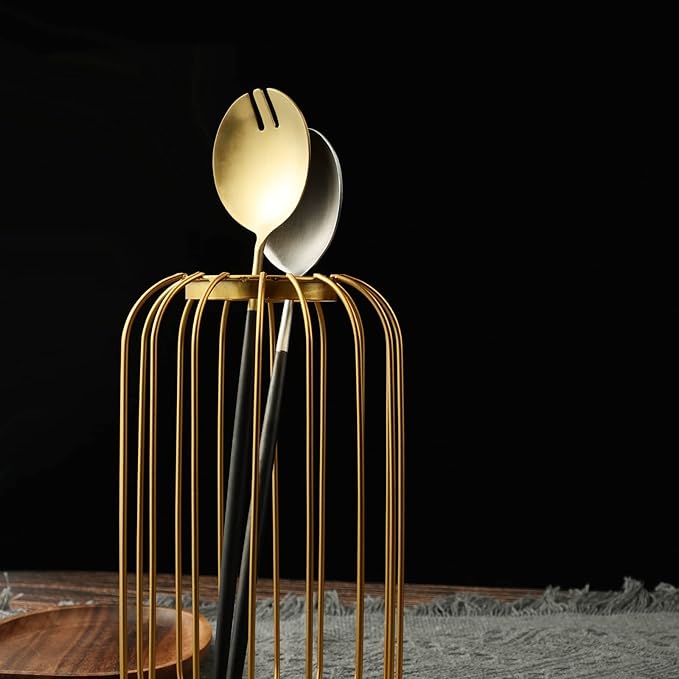 Salad Servers,Spoon and Fork Set 11.41 inch,18/10 Stainless Steel Salad Serving Titanium Plating (black gold)