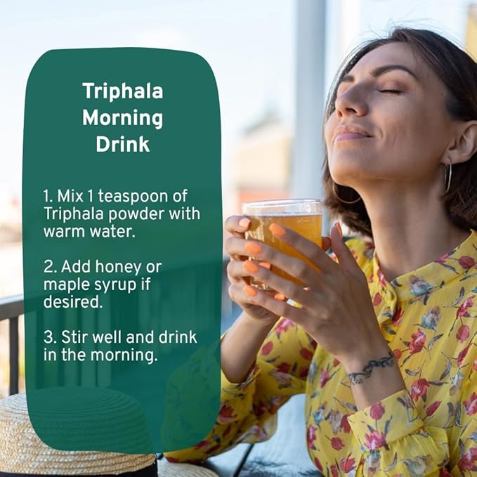 - VERSATILE TRIPHALA POWDER - One of the oldest and most renowned herbal formulas, Triphala is a blend of three wildcrafted fruits namely Amla, Bibhitaki & Haritaki. It has an earthy, nutty, spicy and warm flavor which makes it perfect to add into dishes and drinks.
