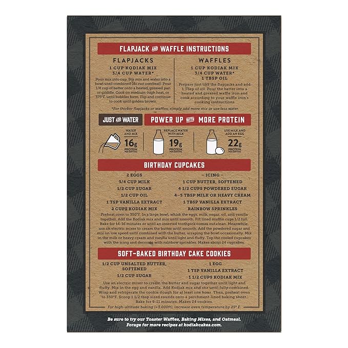 Kodiak Cakes Power Cakes - Protein Pancake Mix & Waffle Mix - 100% Whole Grain- Birthday Cake Flavor (Pack of 6)