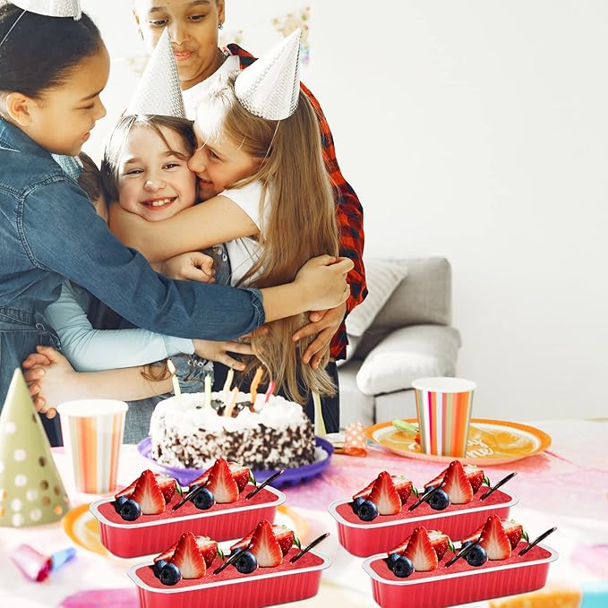 LNYZQUS Mini Baking Pans With Lids 50 Pack, 6.8oz Aluminum Foil Small Loaf Pans Tins Holders,Rectangle Baking Cups Muffin Tins,Disposable Ramekins Muffin Cups For Mini Cake Bread -Red