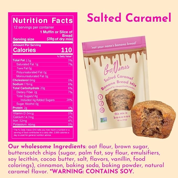 GoNanas Salted Caramel Oat Flour Banana Bread Mix, Suitable for Plant Based Vegan Diets, Gluten Free Dairy Free Snacks, Healthy Snacks For Adults, Muffin Mix, Nut Free, Cupcakes Dessert, NON-GMO, 1pk
