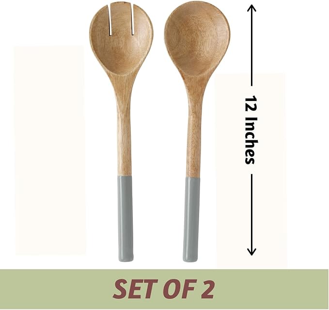 Folkulture Salad Servers or Salad Tongs, Wooden Utensils for Serving Salad, Salad Forks or Salad Tongs for Serving, Salad Sling, 12-inch Spoon and Fork Set, Mango Wood, Grey