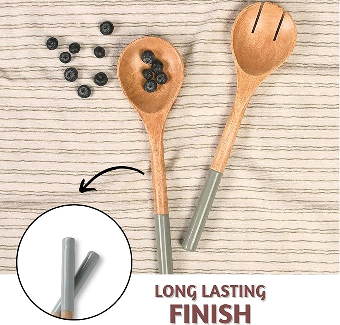 - These salad server set are handicrafted with mango wood with a natural rustic look that makes our salad serving utensils suitable for all types of kitchen and dining decor.