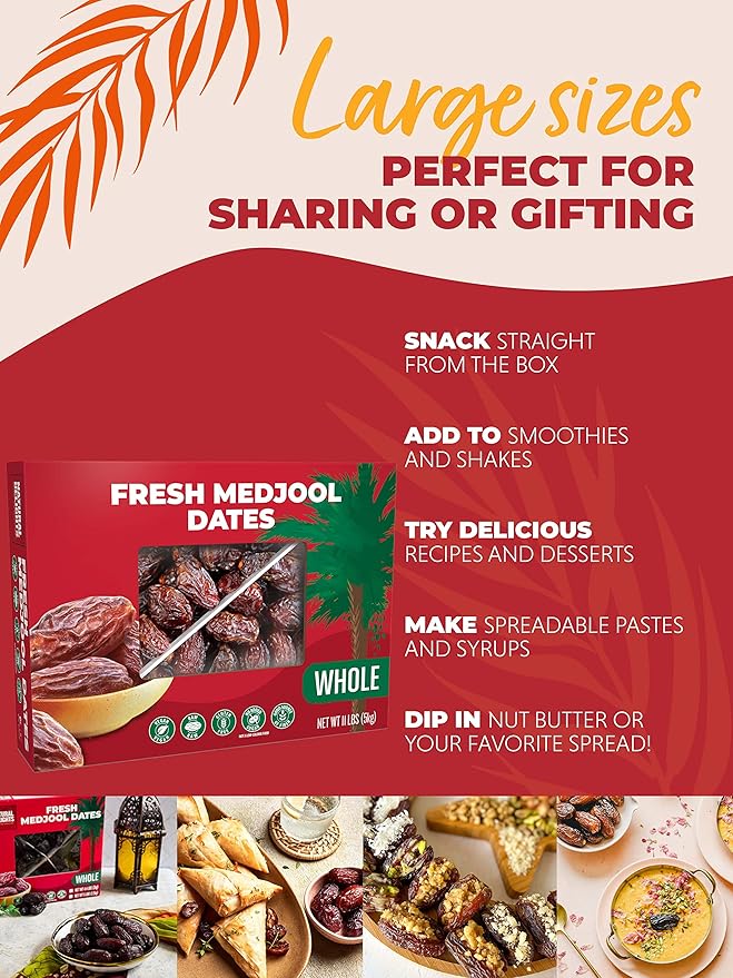 - VERSATILE FRESH FRUIT - You can munch on this low-fat snack alone or get creative with ‘em! Chop & add as a salad topper, make frozen fruit smoothies, make a date paste, use as a sugar substitute for desserts - the possibilities are endless
