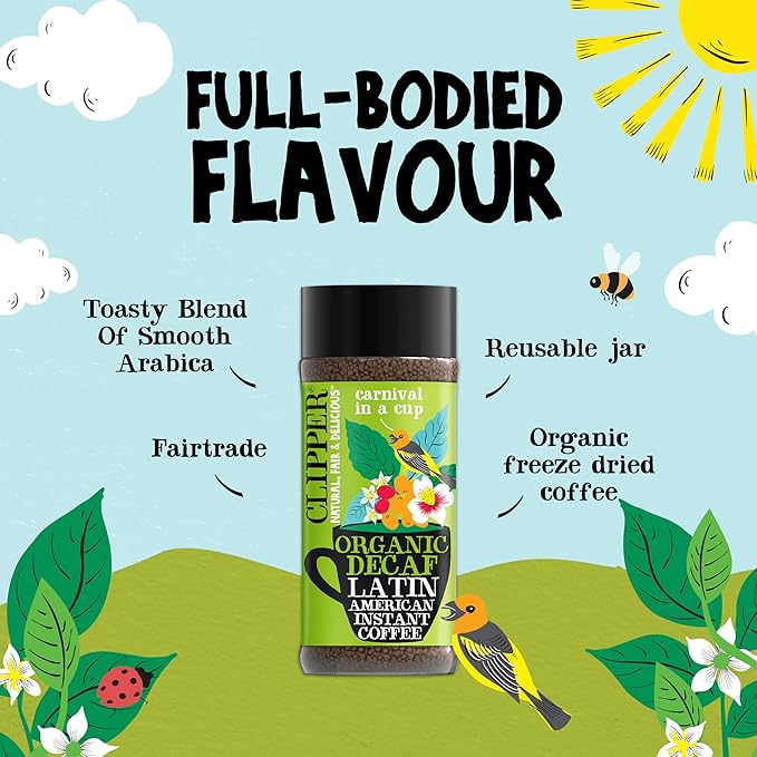Clipper Coffee: Latin American Decaf Instant Coffee – Medium Roast Coffee, Freeze Dried & Ethically Sourced – 100g (3.53oz)