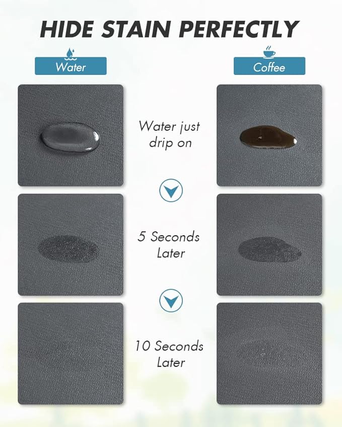 - NO WATER MARKS: 0.2" thick special PU surface hide coffee stains, milk stains and any other dark messy stains well. Say goodbye to traditional coffee mat full of stains