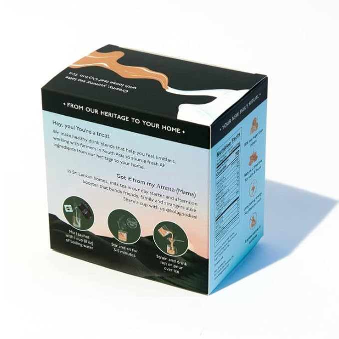 Kola Goodies Lazy Girl Tea ??Instant Sri Lankan Milk Tea Powder with Ceylon Loose Leaf Tea, Monk Fruit, Coconut Sugar ??Low Caffeine Chai Latte Mix ??No Refined Sugar ??10 Sachets