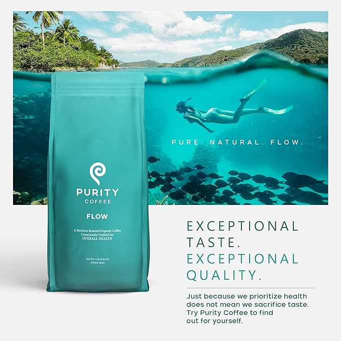Purity Coffee FLOW Medium Roast Organic Coffee - USDA Certified Organic Specialty Grade Arabica Whole Bean Coffee - Third Party Tested for Mold, Mycotoxins and Pesticides - 5 lb Bag