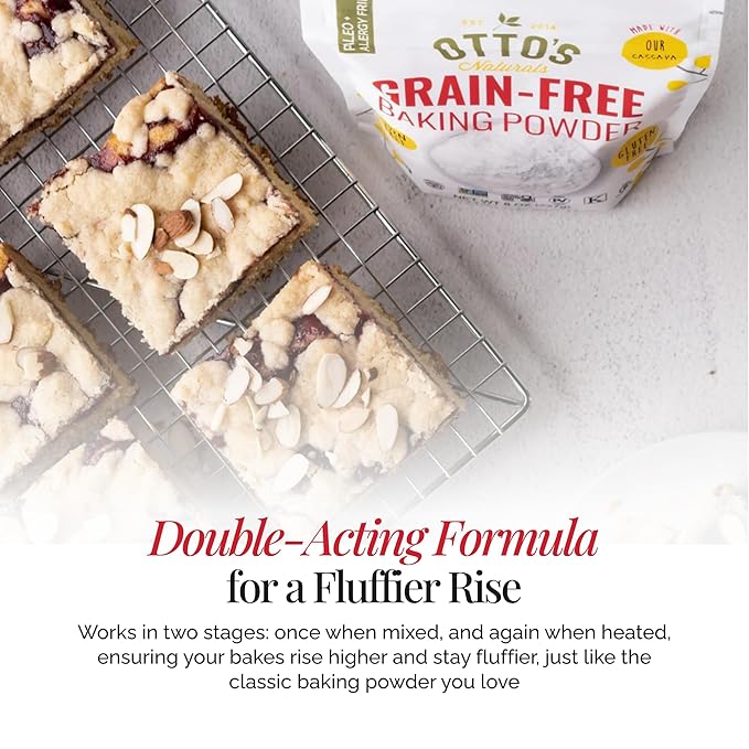 - 100% Grain-Free, Corn-Free & Nightshade-Free (Potato-Free): Otto’s baking powder is made without grains, cornstarch, or potato starches, offering a cleaner, allergen-friendly alternative for your family’s favorite bakes