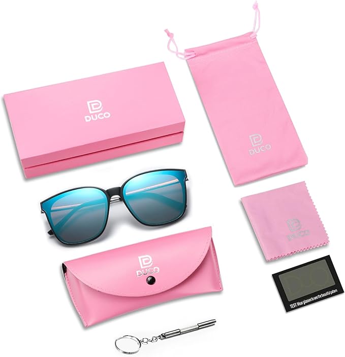 DUCO Oversized Polarized Sunglasses Womens Trendy Mirrored Shades Retro Round Vintage Light Weight UV400 Sun Glasses W016