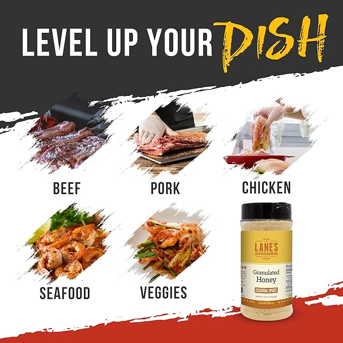 - CHOOSE LANE'S GRANULATED HONEY SEASONING IN OUR PANTRY STAPLE SPICES. Our granulated honey powder for BBQ comes in a 10.5 oz bottle, handcrafted and made in the USA. Perfect for individuals and home cooks.