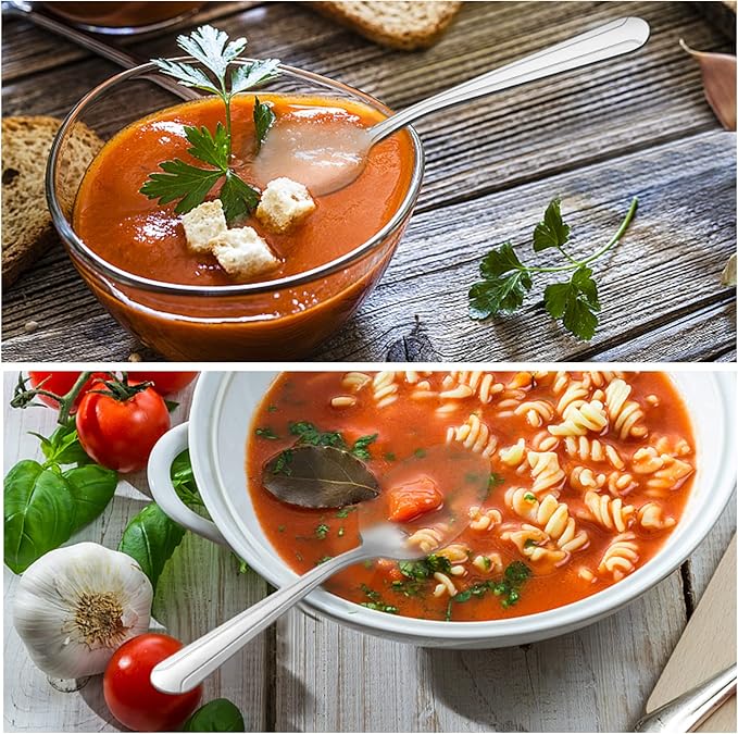 - 【CLASSIC & EXQUISITE DESIGN】 The stainless steel dinner spoons are carefully designed to add more elegance to your table. Our spoons silverware have a classic and special pattern design that will match with your existing silverware sets to elevate dining experience