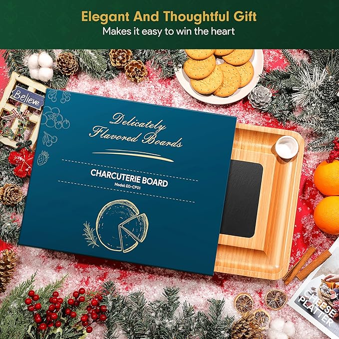 - Versatile and spacious -- Measuring 27.47"×12.6"×1.6", this charcuterie board gift set includes 2 smooth opening drawers, providing ample space for all your favorite cheeses and charcuterie