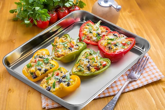 - 【HEAVY DUTY】The toaster oven trays feel sturdy when holding on the hand, Solid steel construction would extend the service life of the pan, More unbreakable than ceramic pan, More durable and more environmentally friendly than the disposable foil pans