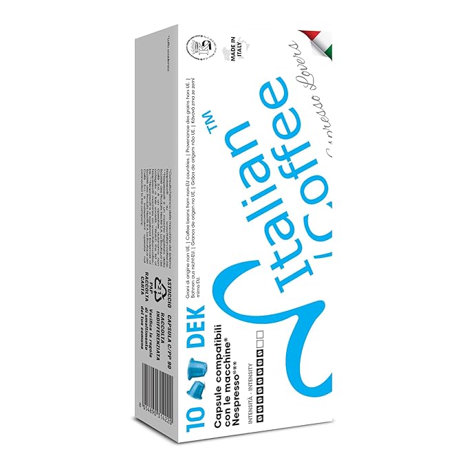 Italian Coffee for Espresso Lovers pods compatible with Nespresso Original machines (100 Decaffeinated DEK Regular Pods, 100 Count (Pack of 1))