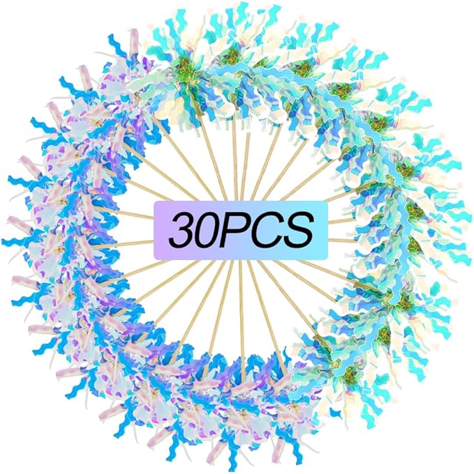 30 PCS Firework Cupcake Toppers Cocktail Food Fruit Picks Sparkle Green and White Foil Firework Cake Toppers For Party Birthday Wedding Ceremony Cake Decoration