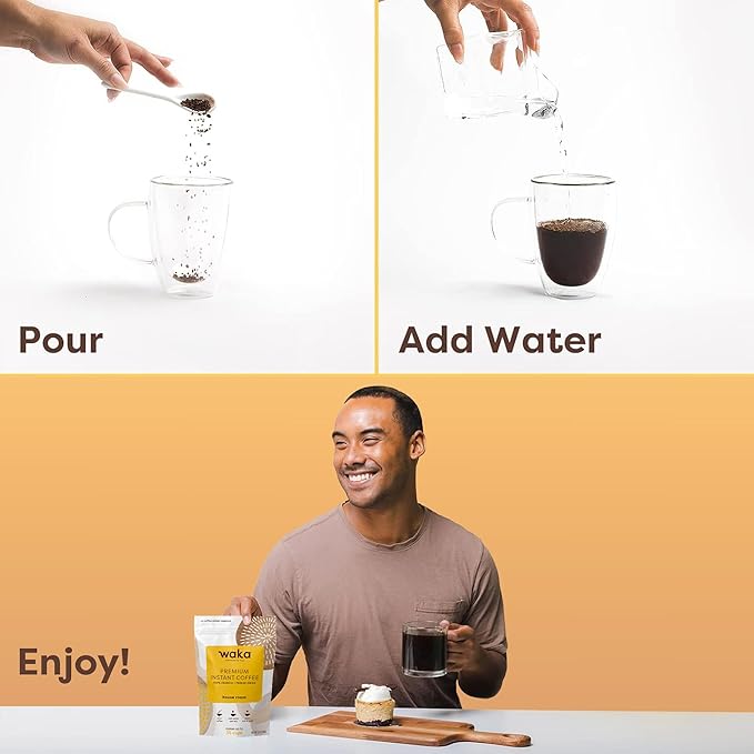 - Convenient and Affordable: At Waka, we know instant beverages the best, because it is all we do. Designed for home and office use, camping, and for those constantly on-the-go, delight in the ease and quickness of a coffee made with only 3 steps - pour, mix, and enjoy.