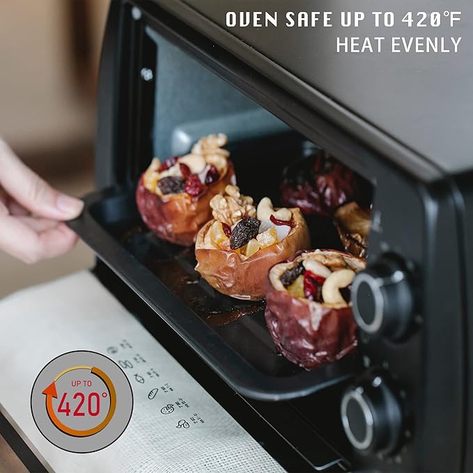 - STAY AWAY FROM ALUMINUM IONS - Bakeware is often in direct contact with food, and aluminum alloy bakeware may precipitate aluminum ions under high temperature conditions. Long-term excessive intake may cause Alzheimer's and cause harm to the human body. Choose carbon steel bakeware, the coating is harmless.