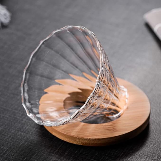 - 【V SHAPE GLASS COFFEE DRIPPER】The coffee filter is made of transparent glass and has a V shape to fully extract coffee. The inner wall has a spiral guide groove structure to make the coffee powder and the water flow fully contacted.