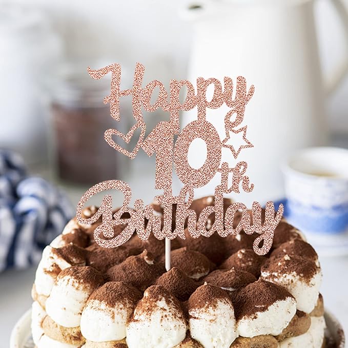 1 Pack Happy 10th Birthday Cake Topper Glitter Heart Star 10 Fabulous Cake Pick Birthday Sign Cake Decorations for Children 10th Birthday Theme Party Supplies Rose Gold