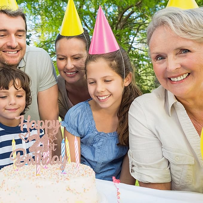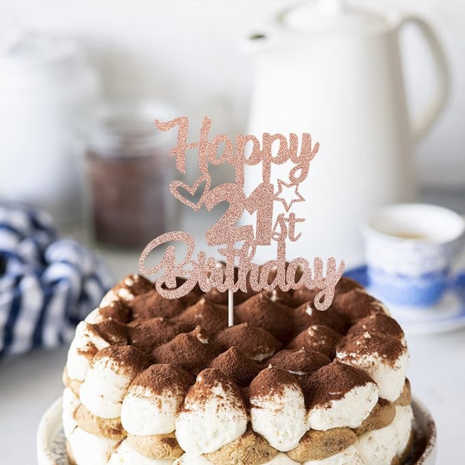 1 Pack Happy 21st Birthday Cake Topper - Glitter Heart Star 21 Fabulous Cake Pick - Rose Gold
