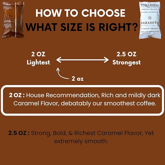 Sarasota Coffee Ground Packets | Gourmet Flavored Medium Roast Bulk Coffee Packs | Salted Caramel | Low Acid Mold Free Singles Individual Pouches for 12 Cup Coffee Maker | 2 Ounce Bags, 36 Count