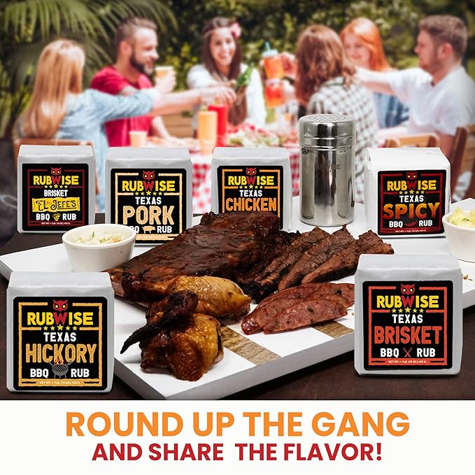 - Six Variety Rubs: Receive one of each flavor of our signature 1lb bags of Rubwise Texas Style BBQ Rubs: Brisket, Pork, Chicken, Hickory, Spicy, and El Jefe’s Premium Blend, as well as a RubWise spice shaker