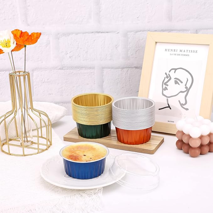 - 【Sturdy Aluminum Foil】-Made from thick sturdy aluminum foil, make our ramekin cups with smoother surface and faster heating,better than using regular baking cups.