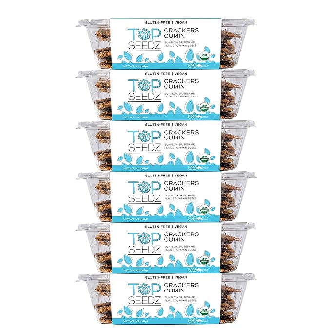 Top Seedz Certified Organic Gluten Free Cumin Seed Crackers | 6-Pack | 5 Ounces | Healthy Vegan Crackers with Plant Based Protein | Made of Sunflower, Flax, Sesame and Pumpkin Seed