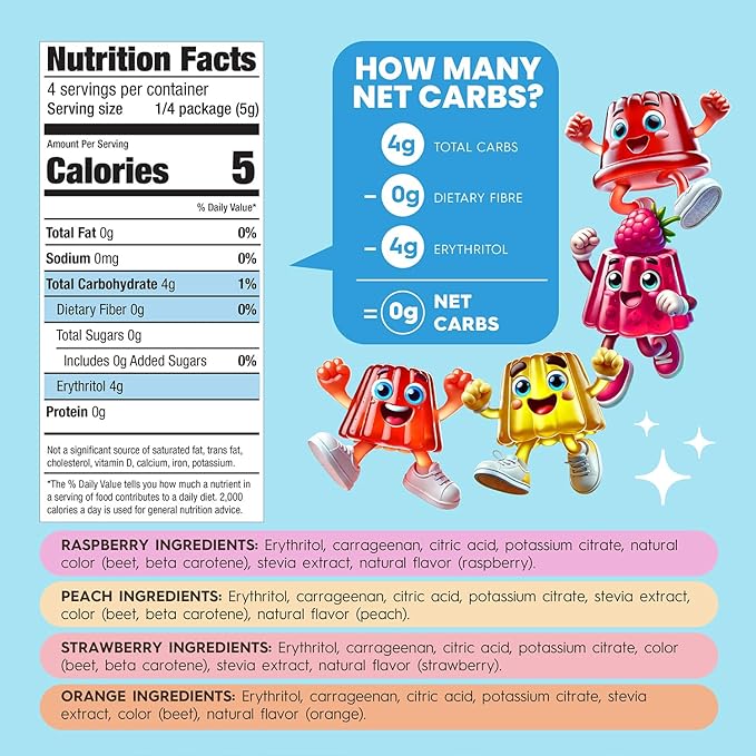 - LOW-CALORIE & LOW-CARB: Looking for diabetic snacks or keto desserts? Our flavorful zero-sugar Jel dessert mixes are a great choice with only 5 calories and 0g net carbs per serving.
