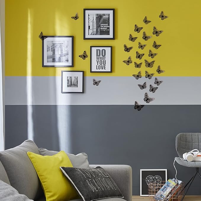 - Shiny Gorgeous Hollow Carved Design - The butterfly decor is made of shiny paper material, which makes the butterfly wall decals look very beautiful and elegant. You can fold the butterfly wings to create a 3D effect and the shape you want.