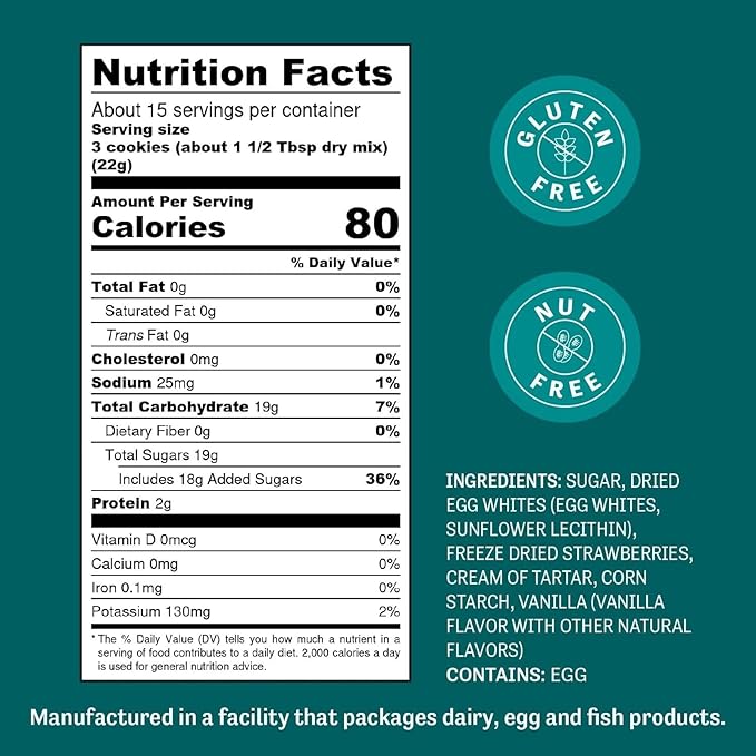 - Allergy Conscious Ingredients: Crafted from natural ingredients like dried egg whites and freeze-dried strawberries, this meringue powder for royal icing is free from preservatives. Compare our clean label to other products for a healthier choice