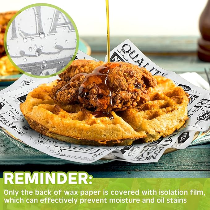 - Oil Proof and Waterproof: the sandwich wrapping paper is covered with a greaseproof film covered, not easy to seep water or break, ideal to pack some fried foods, such as fried chicken, French fries and so on, and the nice flexibility makes them foldable, so you can store it easily
