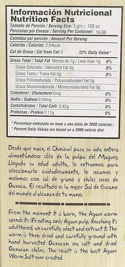 - Great Savory Flavor to accompany your Mezcal, Tequila or Michelada, on fruits and salads, or in signature Mexican dishes. Sparkle it on an orange slice, take a zip of mezcal or tequila, then squeeze it in your mouth and experience it!