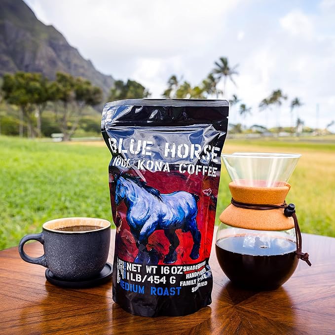 - TRY A CUP: Blue Horse 100% Kona Coffee comes highly rated by thousands of satisfied and loyal customers who have loved our delicious, US-made coffee since 2005. We will let you decide for yourself, and hope you will love our coffee as well. Mahalo!
