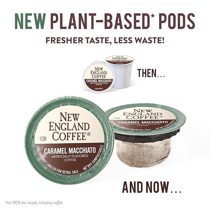 New England Coffee Caramel Macchiato Medium Roast Single Serve Pods, 12ct Box (Pack of 6)