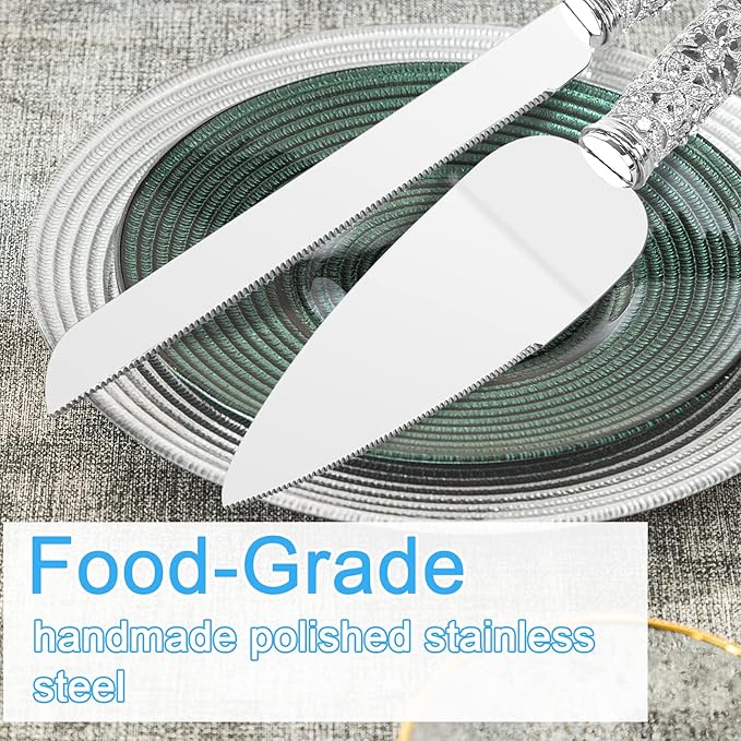 Wedding Cake Knife and Server Set - 2 Piece Dessert Set Metal Handle with Crystal Stones Decoration for Wedding, Anniversary Party Birthday Banquets and Gifts for Bride and Groom