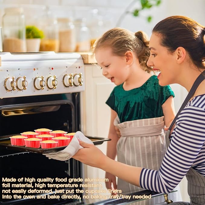 - No Baking Pan Need - These muffin liners are made of high quality food grade aluminum foil material, high temperature resistant and not easy to deform, 100% safe to use. These dessert cups can stand on their own well, simply put the cupcake liners into the oven and bake them directly without baking pan/ tray required