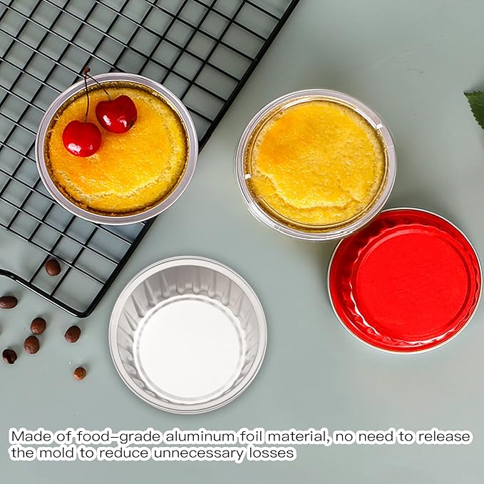 - Less Cleaning, More Baking Enjoyment - These aluminum dessert cups with lids don't need to demold to reduce unneccessary loss, free your hand from scrubbing and cleaning the residue on baking pans. These foil baking cups enable you to focus on the baking and enjoy the delicious desserts, save your lots of time