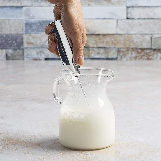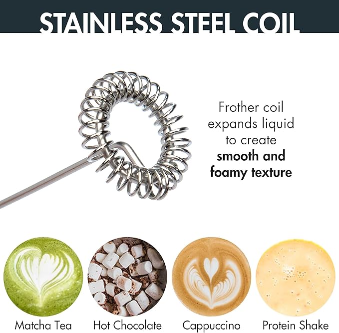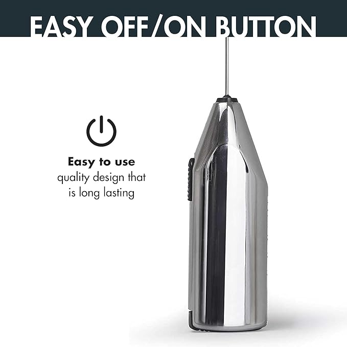 - FOOLPROOF FROTHING: Easily make perfectly foamed milk in less than 30 seconds. All you have to do is heat the milk, insert the handheld milk frother into the cup and turn it on until the desired consistency. Once you’re done frothing, you can add your foamed milk or creamer to your specialty coffee beverage. Powered by 2 AA batteries (not included).