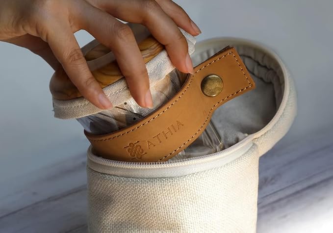 THIA Glass Pour Over Coffee Dripper Set, Glass Cone Dripper, Reusable Cloth Filter, Leather Cup Sleeve, Minimal Single Cup on the Go (Walnut Wood)