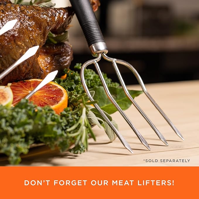 - SIMPLE TO USE: Easy-pull pins quickly release butcher’s twine for a spectacular centerpiece presentation and carving at holiday gatherings and special events.