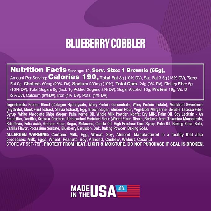 - PROTEIN + COLLAGEN: Packed with flavor and nutrition, each low-sugar Prime Bites Brownie has 19 grams of protein and 5 grams of collagen. This delicious treat is handcrafted with premium whey protein rather than wheat protein, giving you a full punch of amino acids.